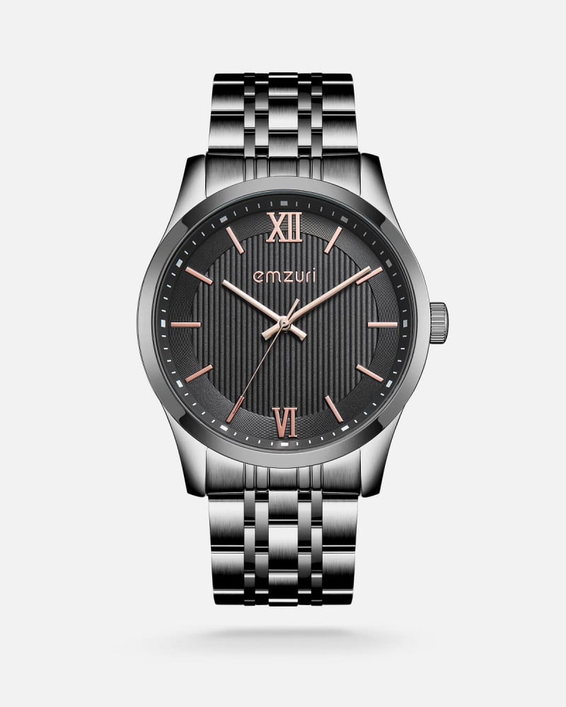 ساعة رجاليه من ماركة ايمزوري بسير من الستانلس ستيل باللون الأسود ، ساعة بتصميم كلاسيك أنيق ، ساعة بميناء بلون أسود بتصميم كلاسيك ، تعكس هذه الساعة الأطلاله الانيقه للرجل العصري في المناسبات المهمه والاطلالات اليوميه ، يمكنك تنسيق الساعة مع إطلالتك في كل الأوقات لطله متميزه .