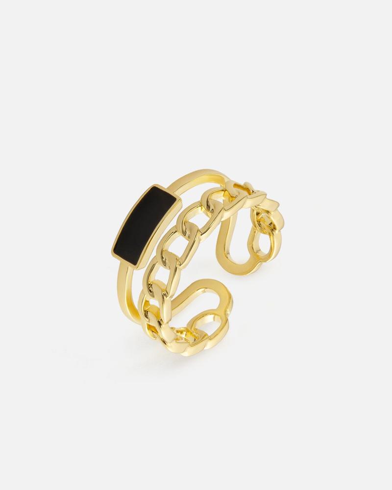 خاتم مميز بتصميم خاتمين متصلين معا بلون ذهبي وأسود