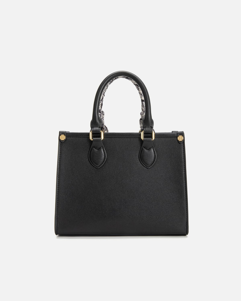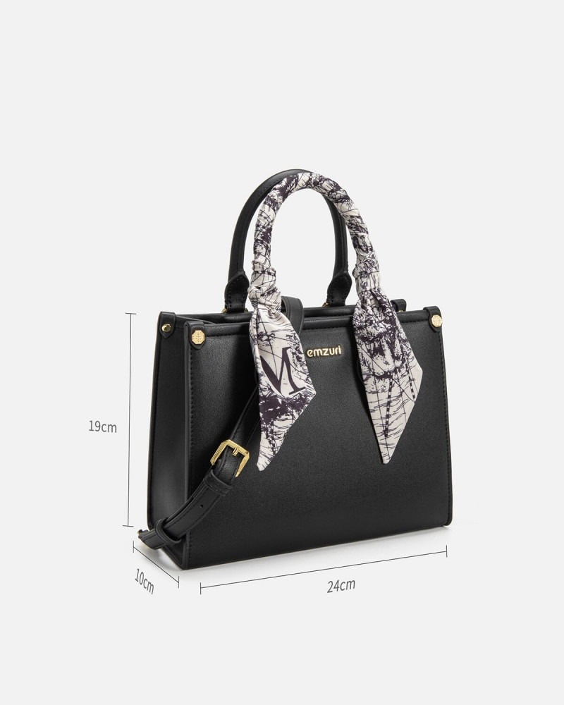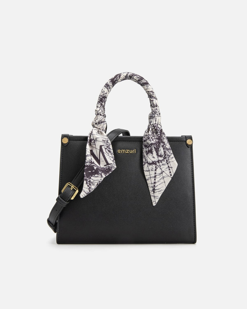شنطة يد نسائية بتصميم عصري متفرد من ماركة ايمزوري ، شنطة من الجلد الناعم باللون الأسود ، مرفق مع الشنطة حزام قابل للإزاله لإرتداء الشنطة بالطريقة المناسبة لإطلالتك وتتزين الشنطة بوشاح يبرز جمال الشنطة ، تتميز الشنطة بتصميمها المناسب لإطلالتك اليومية، شنطة أنيقة بتفاصيل ملفتة .