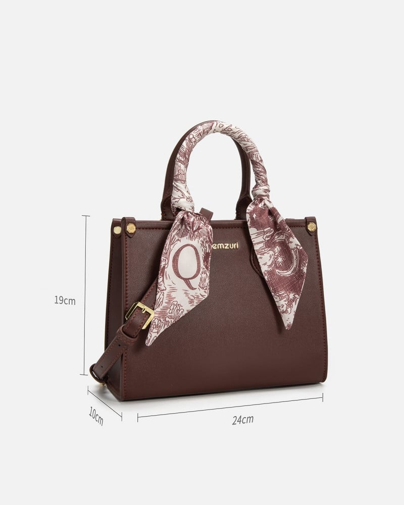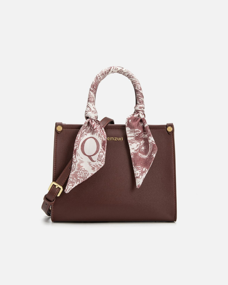شنطة يد نسائية بتصميم عصري متفرد من ماركة ايمزوري ، شنطة من الجلد الناعم باللون العودي، مرفق مع الشنطة حزام قابل للإزاله لإرتداء الشنطة بالطريقة المناسبة لإطلالتك وتتزين الشنطة بوشاح يبرز جمال الشنطة ، تتميز الشنطة بتصميمها المناسب لإطلالتك اليومية، شنطة أنيقة بتفاصيل ملفتة .