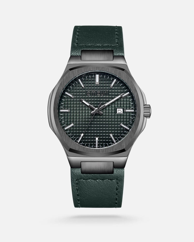 ساعة رجاليه من ماركة ايمزوري بسير من الجلد باللون الأخضر، تتميز الساعة بالميناء الواسع باللون الأخضر وبإطار عريض باللون الأسود ، ساعة عمليه خفيفه على اليد ، تتميز بأنها تناسب كل الأطلالات الرسميه و الكاجوال اليوميه ، تصميم الساعة العملي الخفيف يجعل منها الاختيار الأفضل لك لكل يوم .