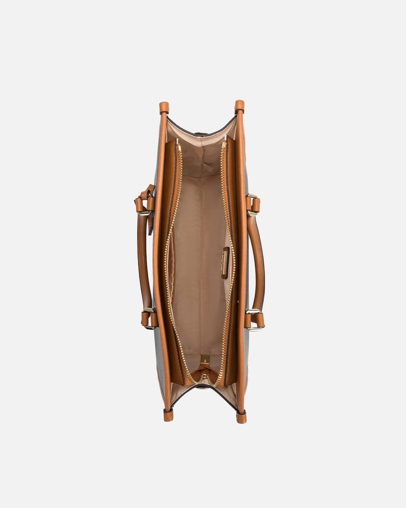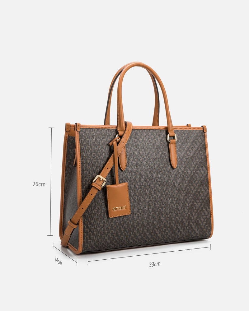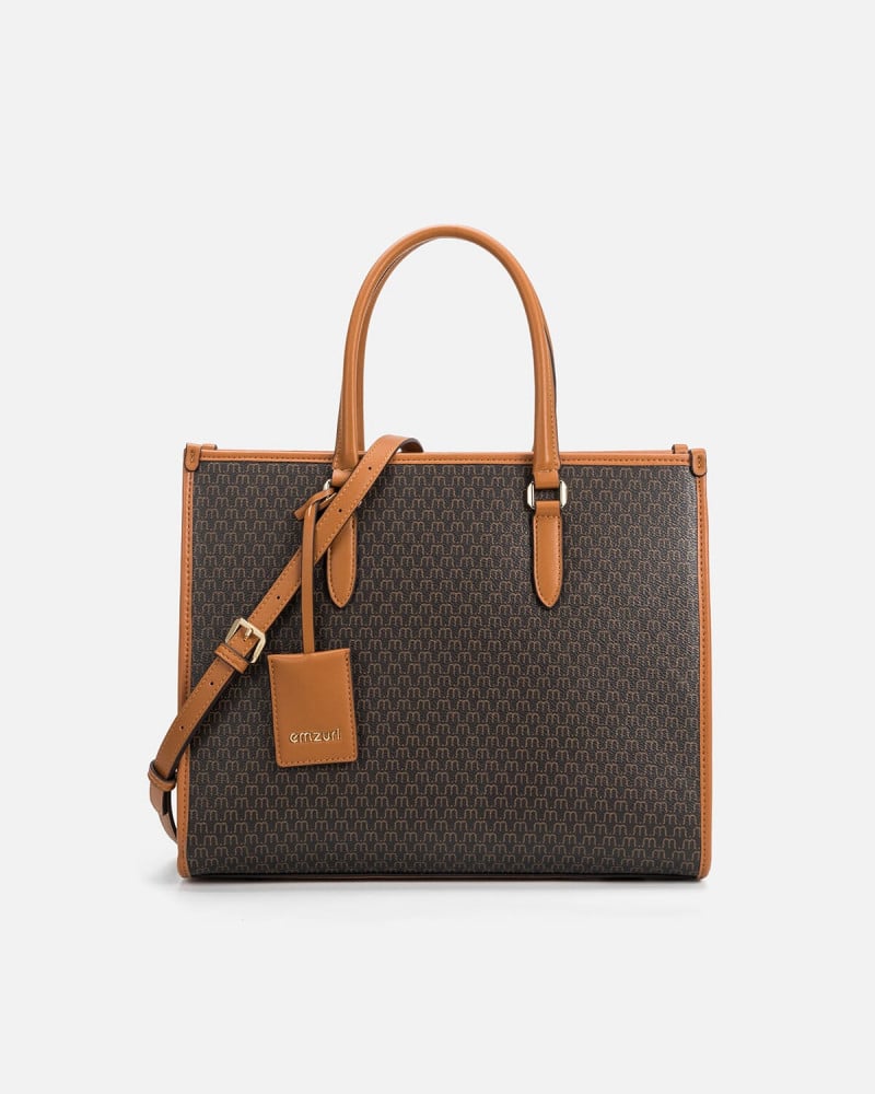 شنطة يد نسائيه من ماركة ايمزوري بتصميم تقليدي وعملي بشكل مربع واسع ، شنطه من الجلد المنقوش بشعار الماركة باللون البني ، الشنطة بسحاب أغلاق لحفظ أغراضك المهمه ، تتميز الشنطة بتصميمها الواسع المناسب لإطلالتك في الجامعه ولإطلالتك في العمل ، شنطه أنيقه بتفاصيل ملفته .