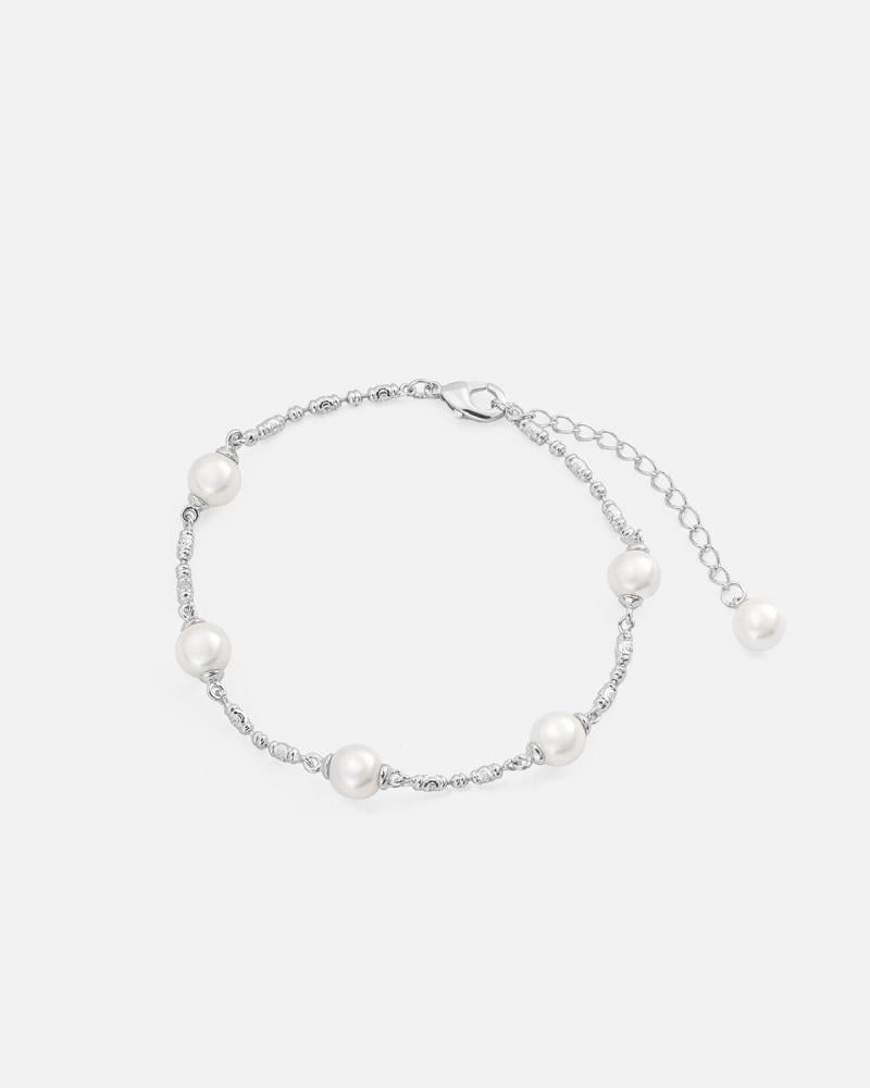 • الاسوارة : بلون فضي بتصميم أنيق يتزين بخرز لؤلؤئي .