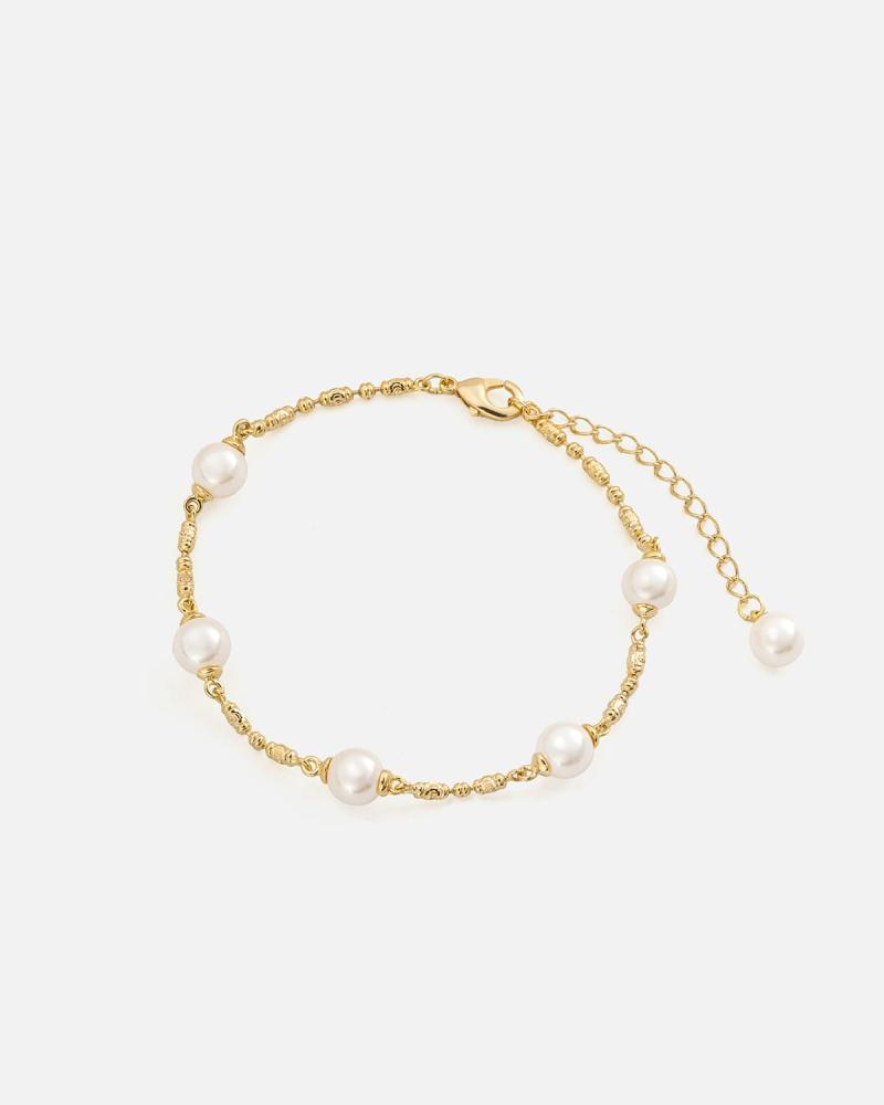 • الاسوارة : بلون ذهبي بتصميم أنيق يتزين بخرز لؤلؤئي .