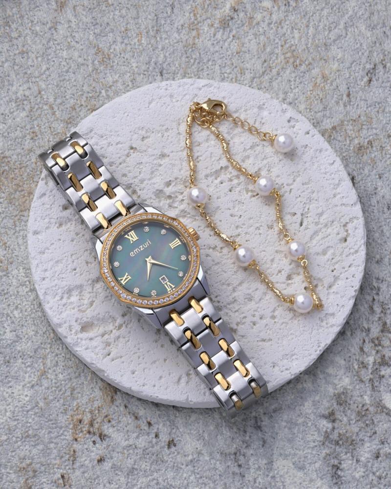 • ميناء الساعة : بلون أخضر بإطار مرصع بفصوص الزركون وبمقاس: 29 mm