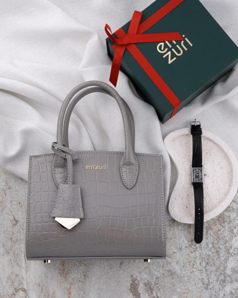 ساعة بتصميمها الكلاسيك ولون السير الفاخر الذي يصف الأناقة والجاذبية مع شنطة أنيقة تضفي اللمسةالساحرة لإطلالتك