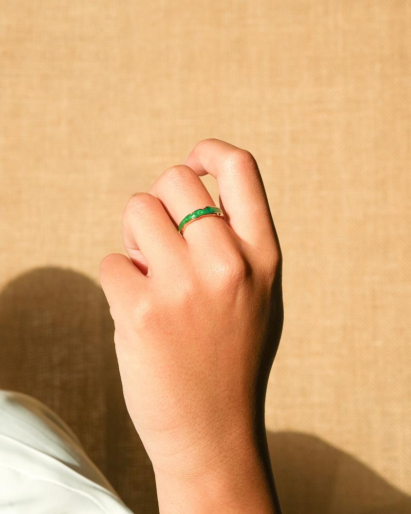 خاتم مميز بتصميم ناعم بلون ذهبي وأخضر لجمالك في كل يوم