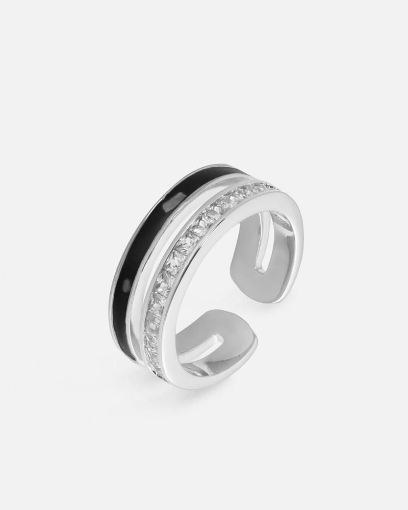 خاتم بتصميم أنيق يمزج فخامة اللون الأسود والذهبي وبريق فصوص الزركون الساحر