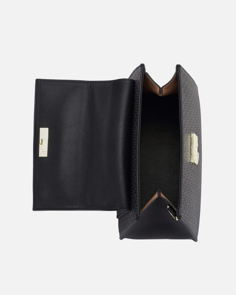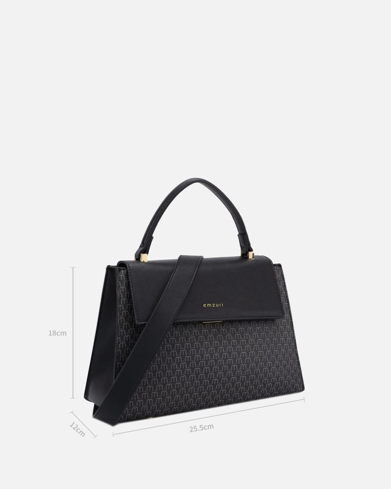 A women's bag with a classic design from the Emzuri’s brand. A bag of soft and embossed leather in black, the bag is designed with a curved handle for easy carrying and to enhance the classic character of the beholder. This bag has also a removable belt to allow you to control the way the bag is worn. Length = 25.5 cm - width = 12 cm - height = 18 cm.