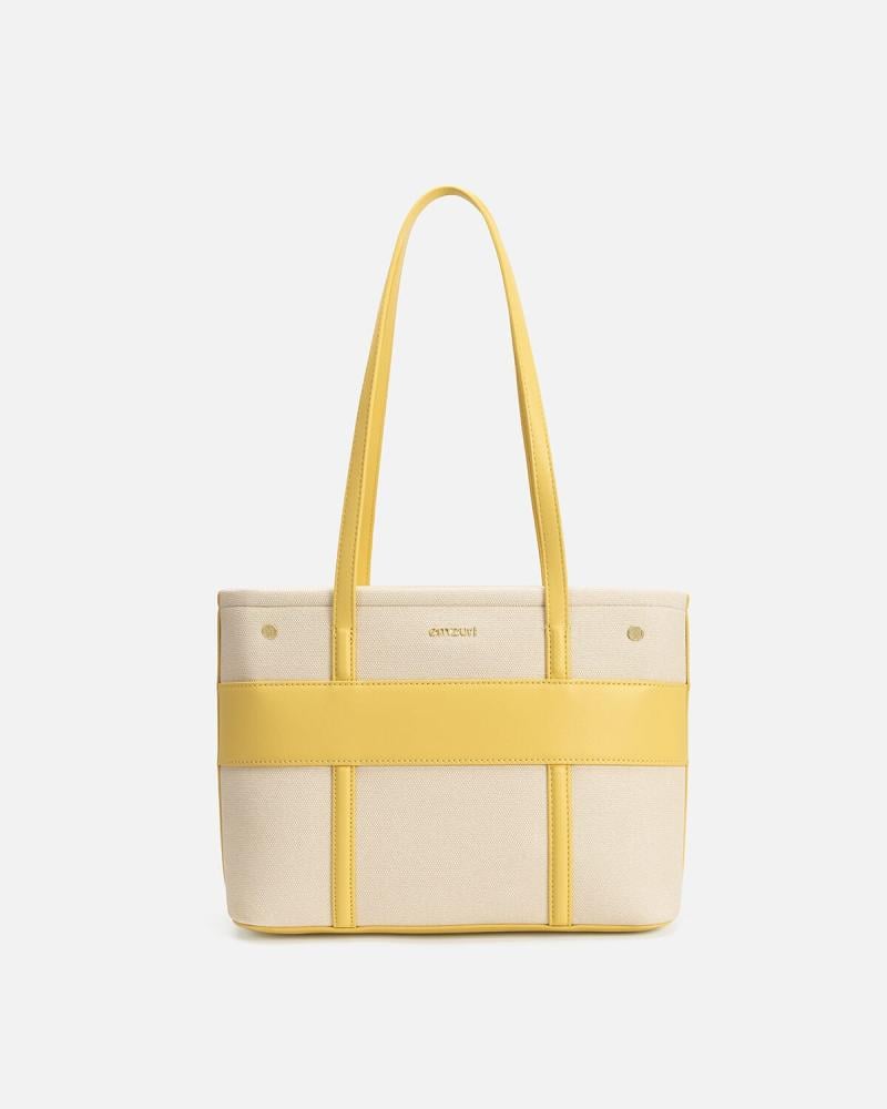 شنطة نسائية كلاسيك بلون أصفر وبيج من امزوري