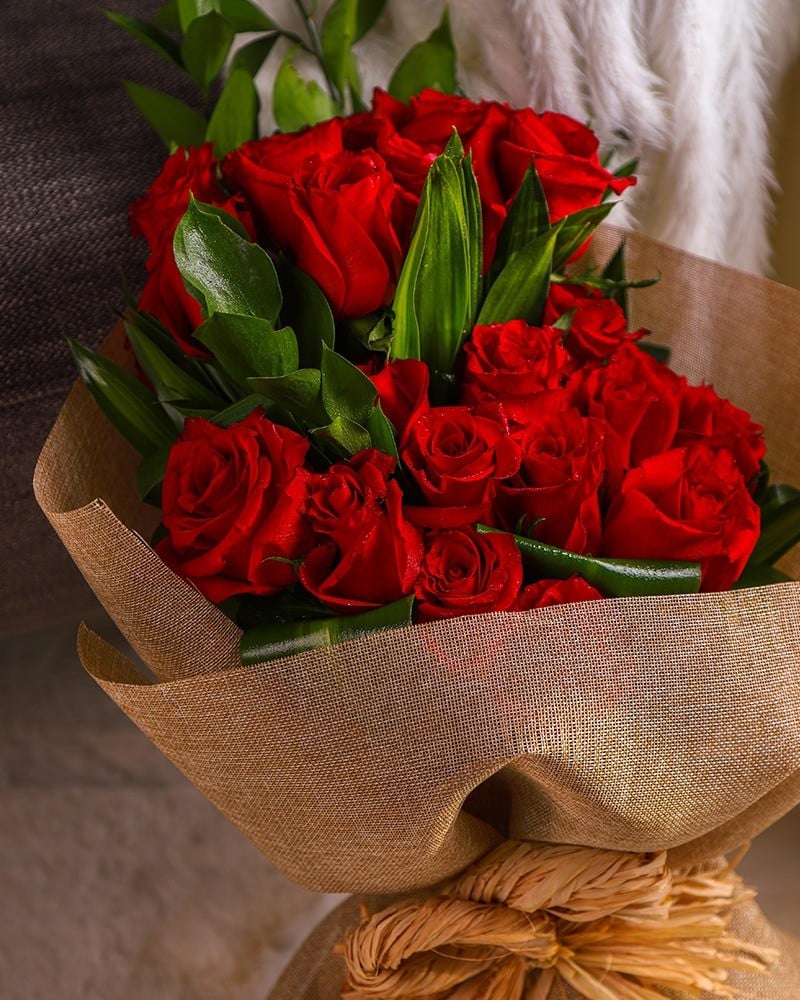 - باقة من ورد الجوري الجذاب بعدد 25 وردة باللون الأحمر